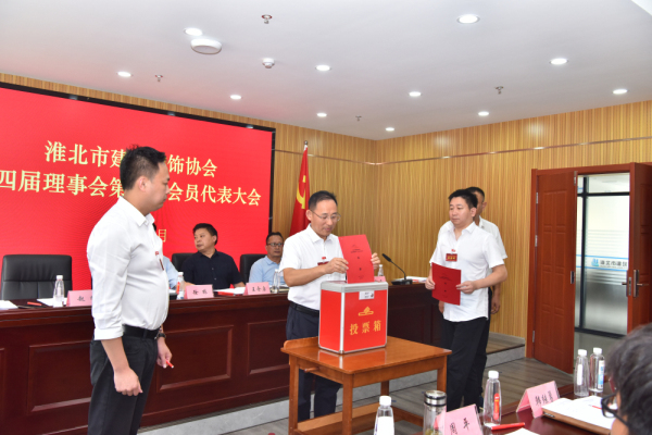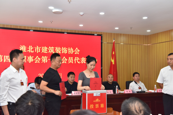 在大會選舉環節,按照既定議程和選舉辦法,現場投票選舉產生了淮北市建筑裝飾協會第四屆理事會會長、常務副會長、副會長、秘書長及監事會成員。趙輝同志當選為協會第四屆理事會會長,孫瑞峰、高龍同志當選為協會常務副會長,王懷義、胡廷岡等 12位同志當選為副會長,韓繼勇同志當選為秘書長,李建等 5 位同志當選為監事會成員。至此,新一屆協會領導班子集體光榮誕生!