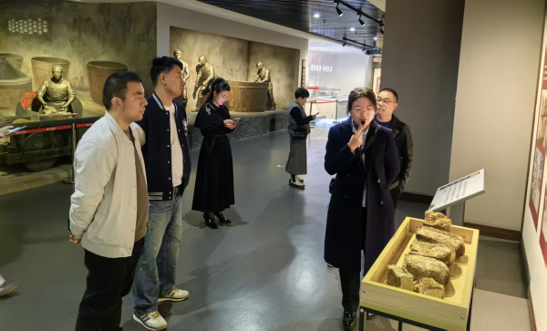 在博物館講解員的引導下,成員們依次參觀各展區。歷史展區內,殷商陶罐、漢代青銅樽等文物直觀呈現口子酒2700余年的釀酒史,“七十二酒坊”光電實景模型再現昔日繁華。工藝展區中,非遺傳承人現場演示“老五甑”古法釀造技藝,讓大家近距離感受傳統工藝的匠心傳承。AR沉浸式體驗區更讓大家“置身”春秋戰國釀酒作坊,直觀感受糧食轉化為瓊漿的全過程。
